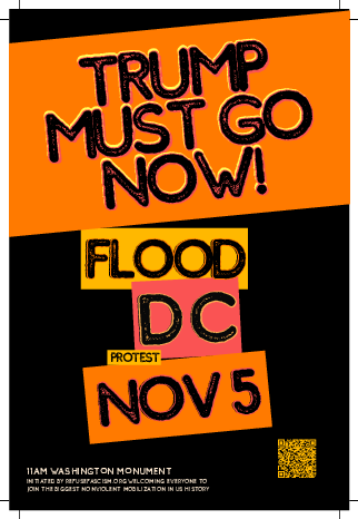 TRUMP MUST GO NOW! FLOOD DC PROTEST NOV5 (PALM CARD)