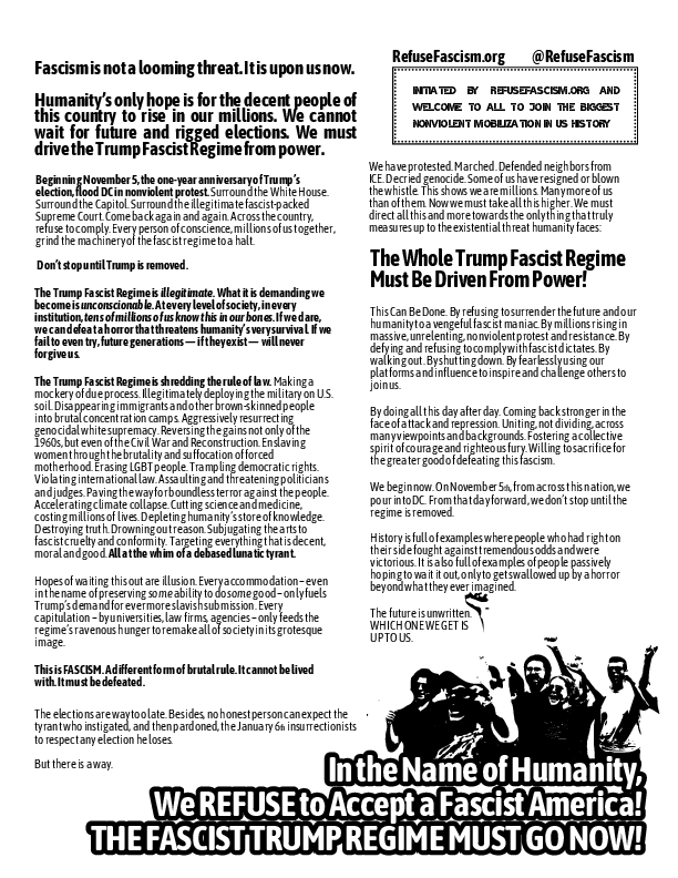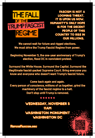 THE TIME HAS COME FOR… THE FALL OF THE FASCIST TRUMP REGIME BEGINNING NOV 5 11AM (COLOR)