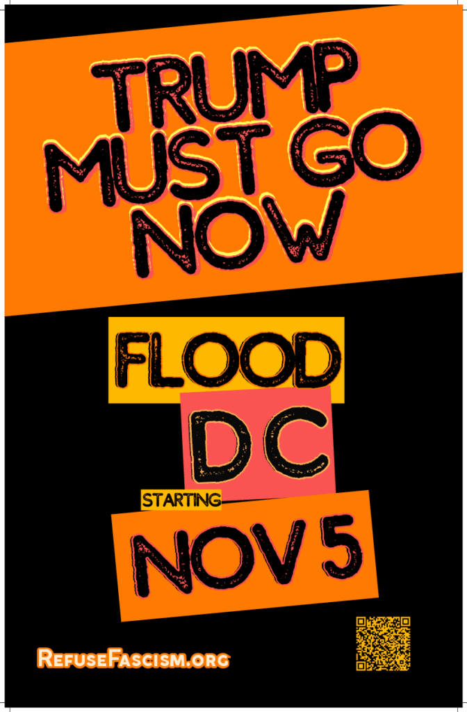 THERE IS NO LIVING WITH FASCISM!ALL OUT for DC,11-05 11:00 am – Washington MonumentTHE TRUMP FASCIST REGIME MUST GO NOW! Beginning November 5, the one-year anniversary of Trump’s election, people from across the country will flood Washington, DC in sustained, nonviolent protest to demand the Fall of the Trump Fascist Regime. Initiated by RefuseFascism.org, welcoming […]