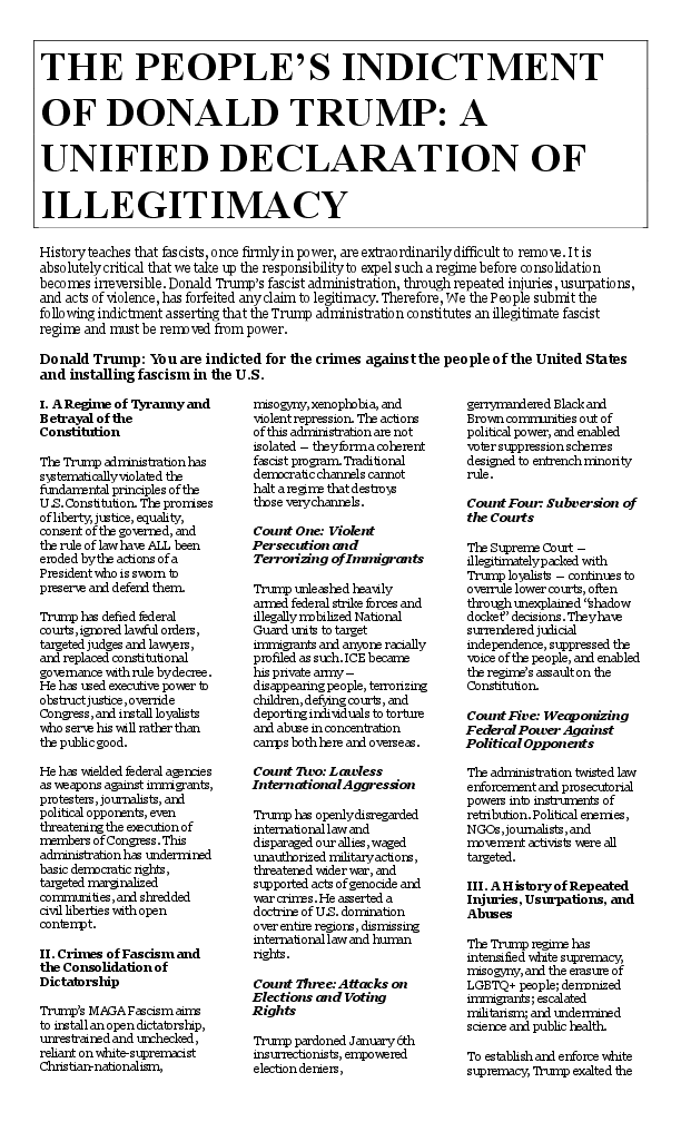 THE PEOPLE’S INDICTMENT OF DONALD TRUMP: a UNIFIED DECARTION OF ILLEGITMACY