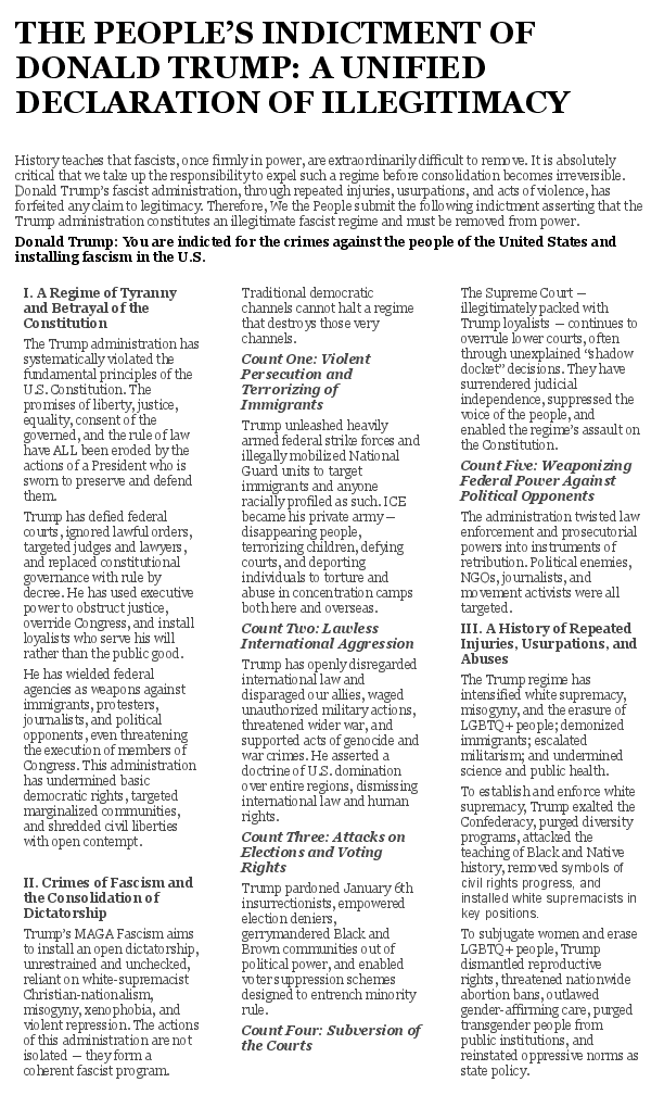 The People’s Indictment of Donald Trump: A Unified Declaration OF Illegitimacy (8.5×11, 2 sided)