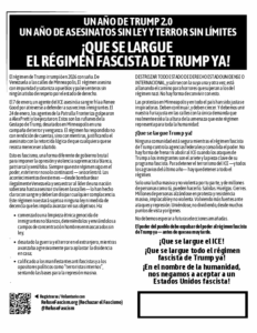 UN AÑO DE TRUMP 2.0 UN AÑO DE ASESINATOS SIN LEY Y TERROR SIN LÍMITES ¡QUE SE LARGUE EL RÉGIMEN FASCISTA DE TRUMP YA! January 29, 2026 Read More »