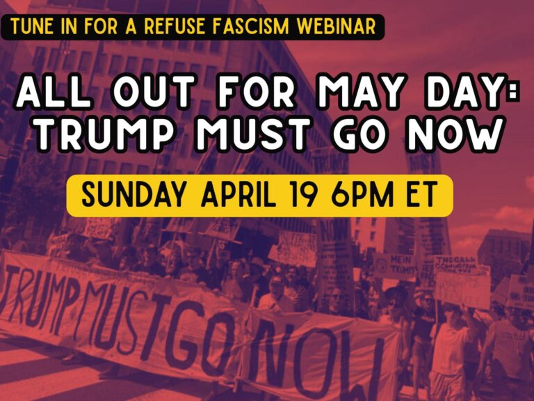 This May Day (May 1) demands “no business as usual” — walking out of work and school and gathering together in nonviolent protest in the streets to raise the demand: TRUMP MUST GO NOW. That is how we draw a clear political and moral line: there is no living with Trump fascism. In the name of humanity, we refuse to accept a fascist America.
