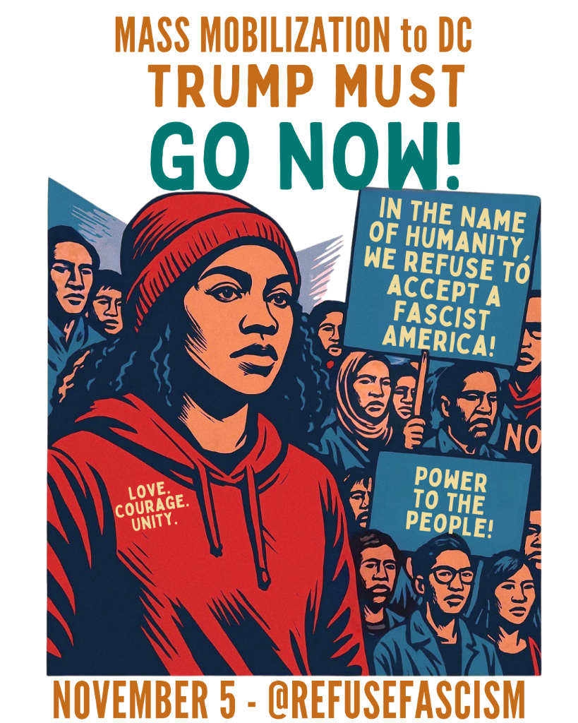 Beginning November 5, the one-year anniversary of Trump’s election, flood DC in nonviolent protest. Surround the White House. Surround the Capitol. Surround the illegitimate fascist-packed Supreme Court. Come back again and again. Across the country, refuse to comply. Every person of conscience, millions of us together, grind the machinery of the fascist regime to a halt.