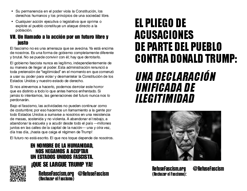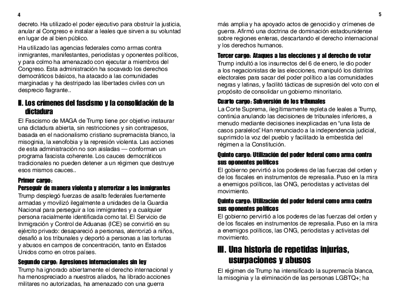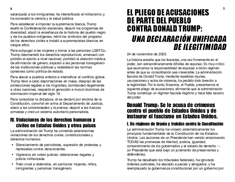 EL PLIEGO DEACUSACIONESDE PARTE DEL PUEBLOCONTRA DONALD TRUMP:UNA DECLARACIÓNUNIFICADA DEILEGITIMIDAD