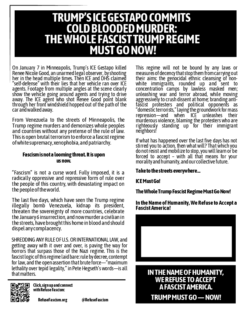 Trump’s ICE Gestapo Commits Cold Blooded Murder: The whole Fascist Trump Regime Must Go Now!