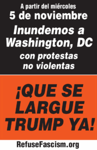 The Time Has Come For… The Fall Of The Trump Fascist Regime Beginning November 5 2025 Washington DC (11×17, Spanish) September 5, 2025 Read More »