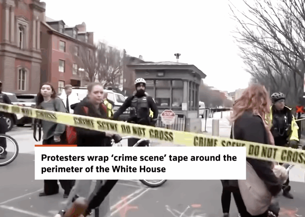 In a peaceful demonstration, protesters demanding President Donald Trump to step down marched in Washington, D.C., and wrapped crime scene tape around the White House perimeter.
