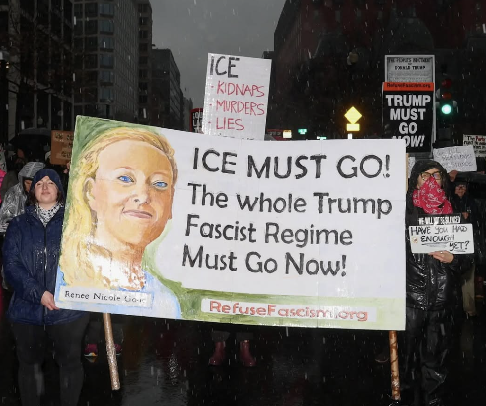 Saturday Jan 10 hundreds of people came out to the White House in the pouring rain to protest the murder of Renee Nicole Good by ICE agents in Minneapolis and the overall ICE terror and escalation of fascism from the Trump regime. The protest, organized by Refuse Fascism DMV, joined in with nationwide protests and the call from Indivisible of “ICE Out For Good,” bringing that powerful demand together with what is needed to realize it: The Whole Trump Fascist Regime Must Go Now.