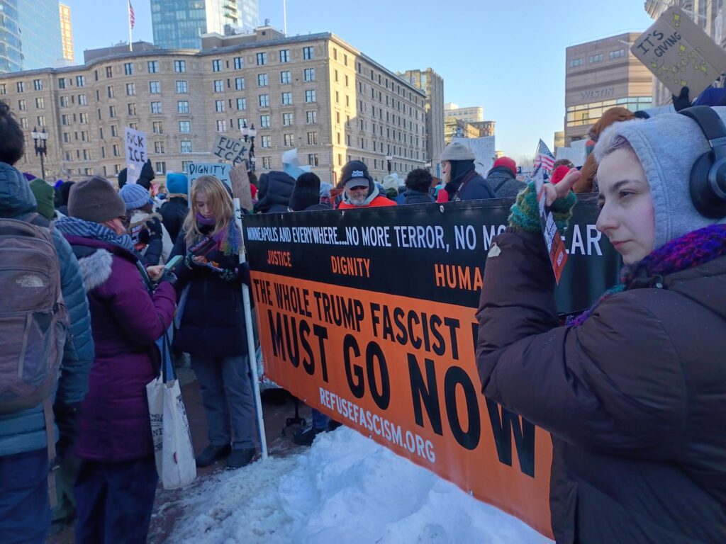 On January 30, 2026, a nationwide strike and protests were held across the U.S. to protest Trump’s ICE Gestapo – which surged into Minneapolis on a wave of Trump’s genocidal rhetoric against Somali immigrants and has murdered two civilians in cold blood. This national strike came one week after the people of Minnesota staged a state-wide strike, filling the streets in freezing temperatures and inspiring others across the country to get in the streets. Tens of thousands, by some estimates over 100,000 across the country, protested on January 30 (and continued into the weekend). Tom Morello held a concert in Minneapolis, with a featured performance by Bruce Springsteen of his protest song “Streets of Minneapolis”, and then led people to the march that was taking off a block away. This nonviolent resistance must continue and grow.