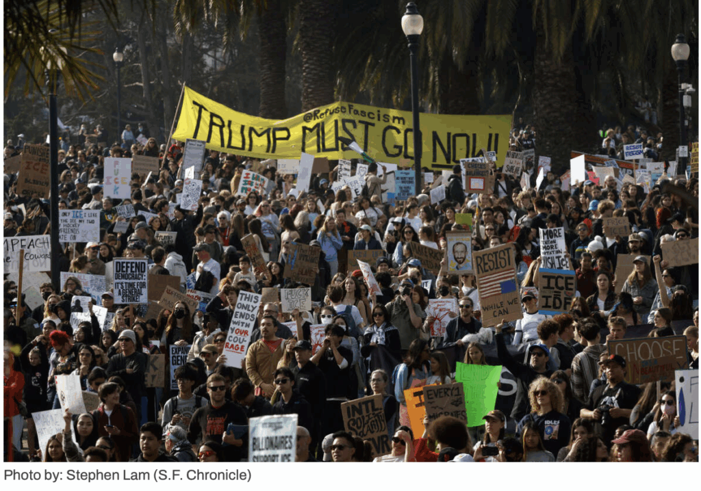 More and more, the people in the streets refusing to accept a fascist America has to set the terms throughout society – and go all the way to the removal of the Trump fascist regime. The demand TRUMP MUST GO NOW has to be a growing force in these protests – with people seriously setting their sights toward their sustained mass protests leading to Trump and his regime being removed from power. For more on why that is necessary and possible, read The People’s Indictment of Donald Trump: A Unified Declaration of Illegitimacy.