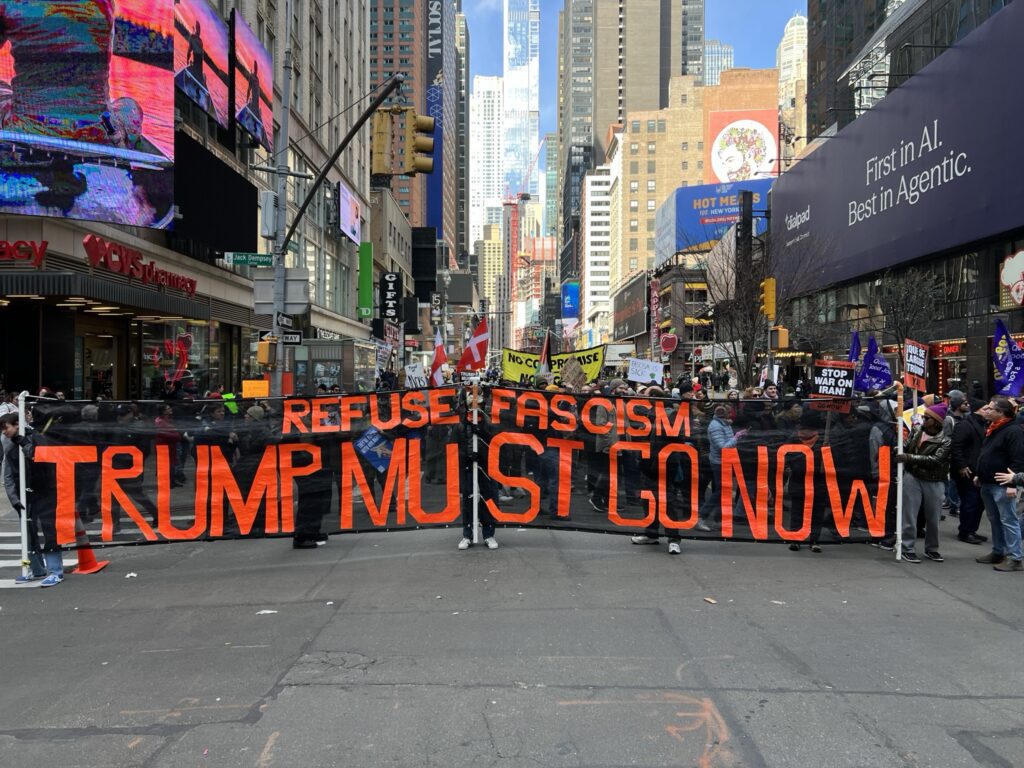 On March 28, 2026, people across the country took to the streets again to show opposition to the Trump regime. Refuse Fascism called for contingents to spread the demand Trump Must Go Now, a demand that millions of people should take up in this moment – a moment of dangerous escalation and fascist consolidation on one side and deadly waiting and capitulation on the other. In several cities, thousands of people got this statement: On No Kings Day 2026: See It Clearly. Act Accordingly.
