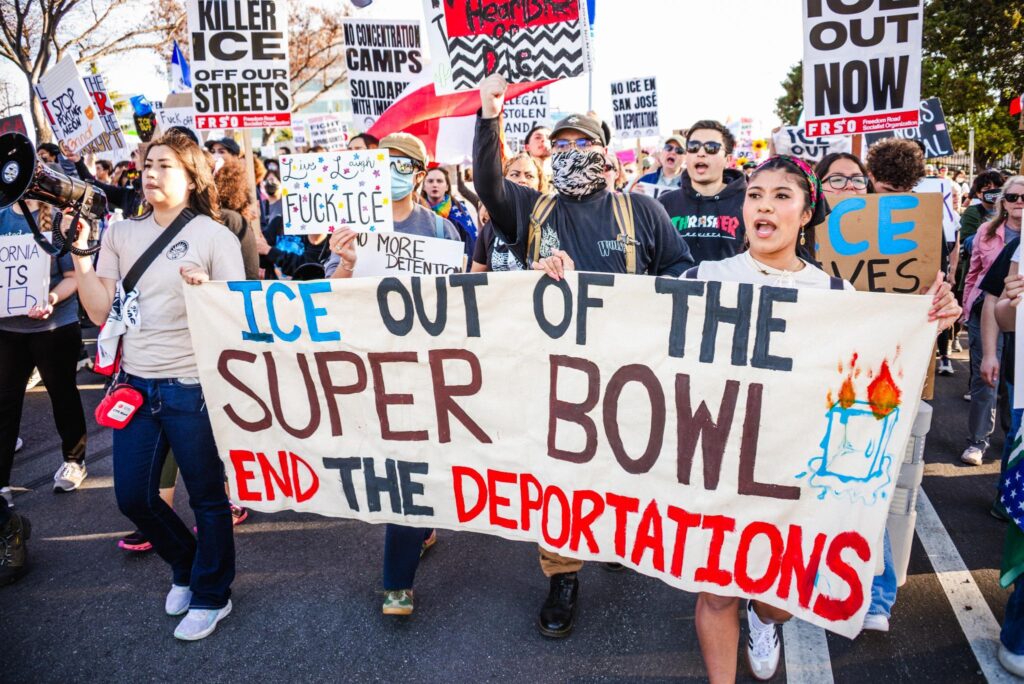 We gathered about 50 people and marched back to the stadium. Eventually we walked to the main gate as people were coming and going and handed out thousands of flyers linking to the People’s Indictment of Donald Trump: A Unified Declaration of Illegitimacy.