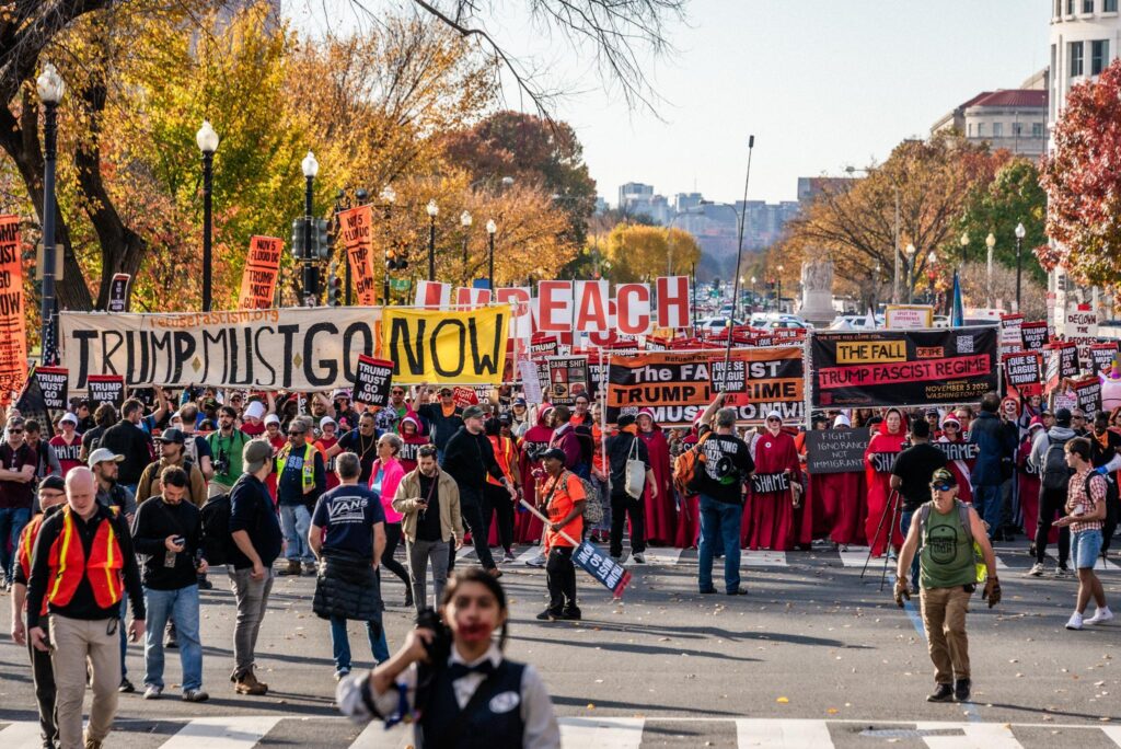 Beginning November 5, the one-year anniversary of Trump’s election, flood DC in nonviolent protest. Surround the White House. Surround the Capitol. Surround the illegitimate fascist-packed Supreme Court. Come back again and again. Across the country, refuse to comply. Every person of conscience, millions of us together, grind the machinery of the fascist regime to a halt.