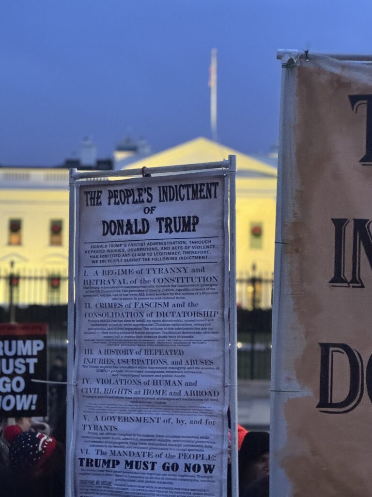 On Saturday, December 13, 250 people gathered at the White House to deliver The People’s Indictment of Donald Trump: A Unified Declaration of Illegitimacy. This powerful indictment outlines the major crimes of the fascist Trump regime and why it must be driven from power. This action concluded six weeks of intense, on-the-ground mobilization of nonviolent protest in DC that brought forward the broad unity of thousands from all over the country, from different backgrounds and political perspectives, to demand “Trump Must Go Now!”